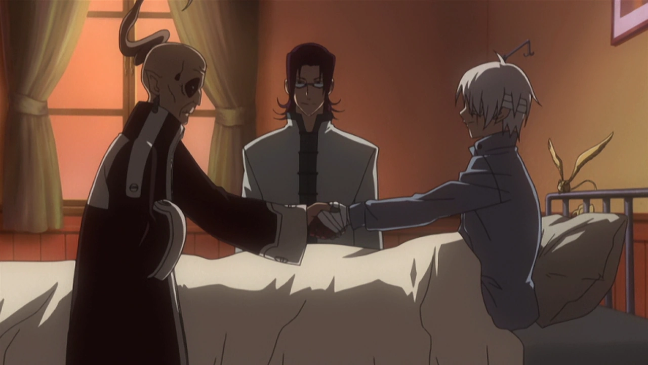 Поисковый отряд Кросса обсуждает предполагаемое местоположение их Генерала. На одной из станций Аллен извиняется перед Линали за тот инцидент, произошедший в городе, застывшим во времени, в ответ на что она говорит, что ненавидит его левый глаз и что всегда будет помогать ему. После она уходит прочь, а руку Аллена вдруг хватает какой-то мужчина.