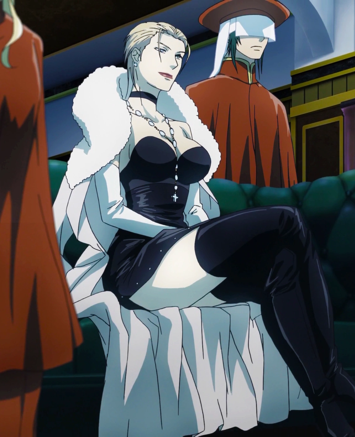 Высокая женщина с короткими, зачесанными назад светлыми волосами и голубыми глазами. Как и большинство глав подразделений, она носит длинное белое пальто с белой эмблемой Ордена. Под пальто она обычно надевает майку без рукавов с глубоким вырезом и обтягивающие брюки или юбку. На шее носит наперсный крест с цепочкой с бусинами. До недавнего времени стала выглядеть более женственно: черты лица стали более плавными и мягкими, как и само телосложение стало более хрупким. На губах она стала носить ярко-красную помаду. Волосы же стали немного длиннее по сравнению с тем временем, когда она впервые была показана на конференции в Главном Управлении. Немного уменьшился и её рост, возможно, из-за спавшей мышечной массы.